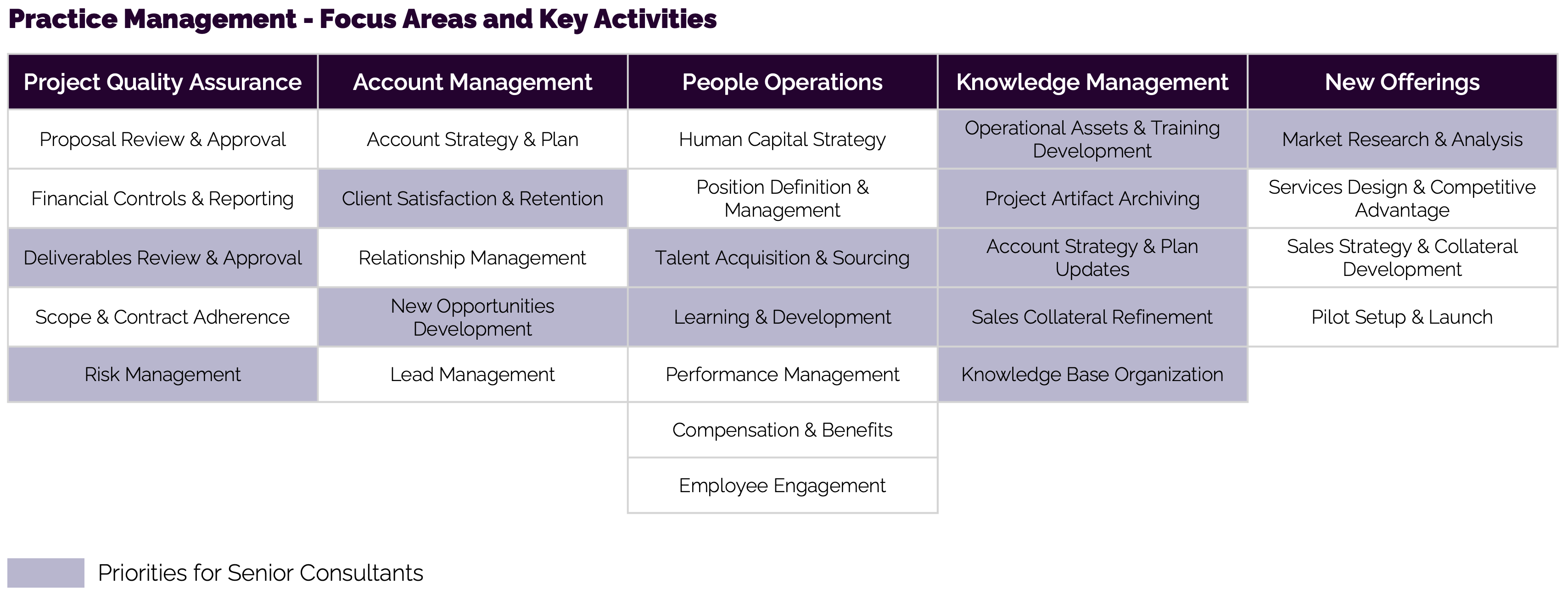 The company building capabilities from people operations to the entrepreneurial aspect of developing new practice offerings.